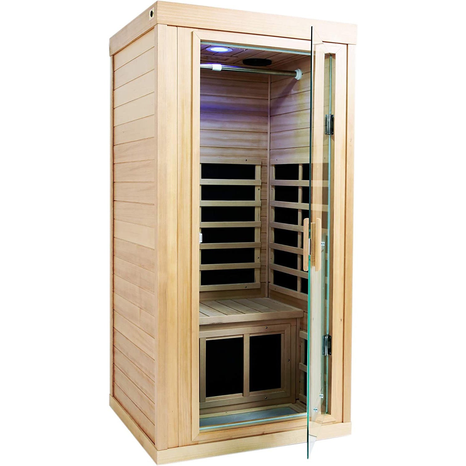 Indoor Canadian Hemlock Infrared Sauna Multi Colored Light Spectrum 1 Person Aleko